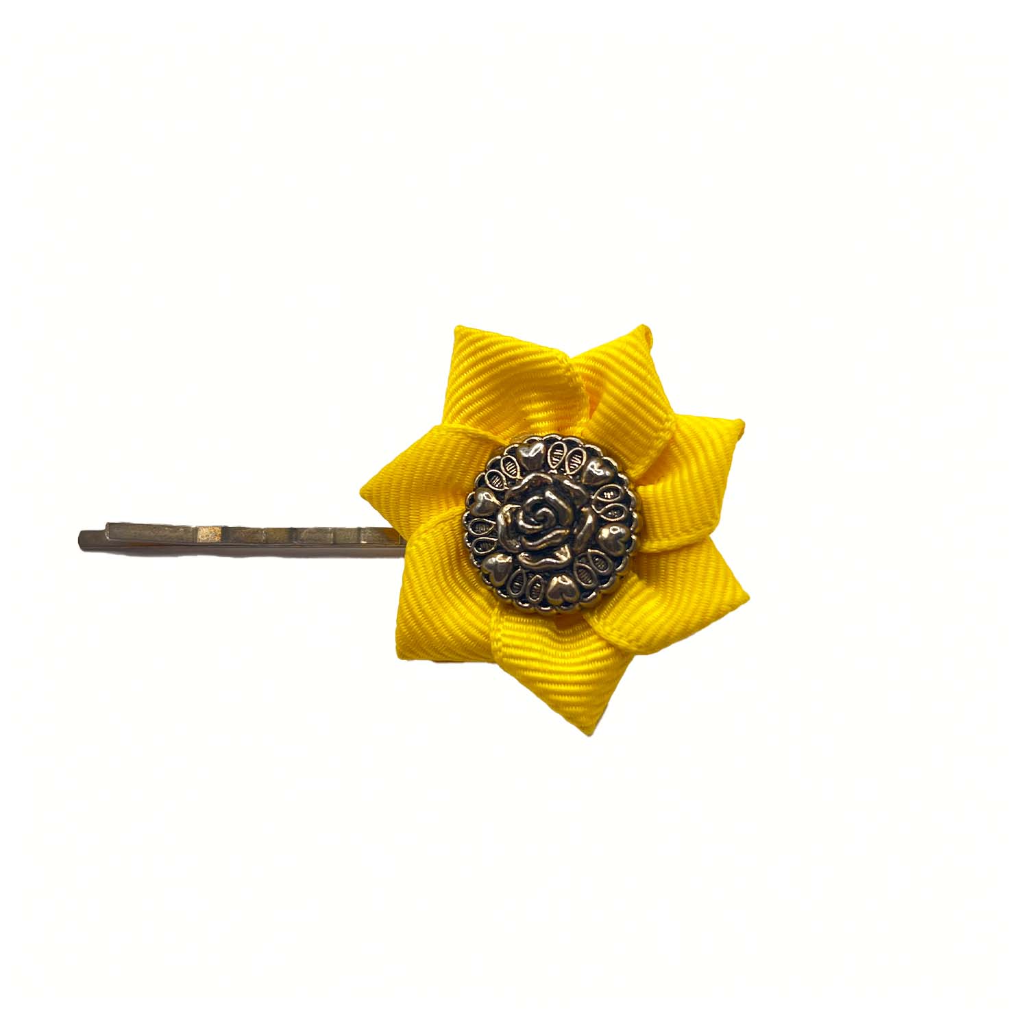 Hair Clip Yellow – Rose Button – S